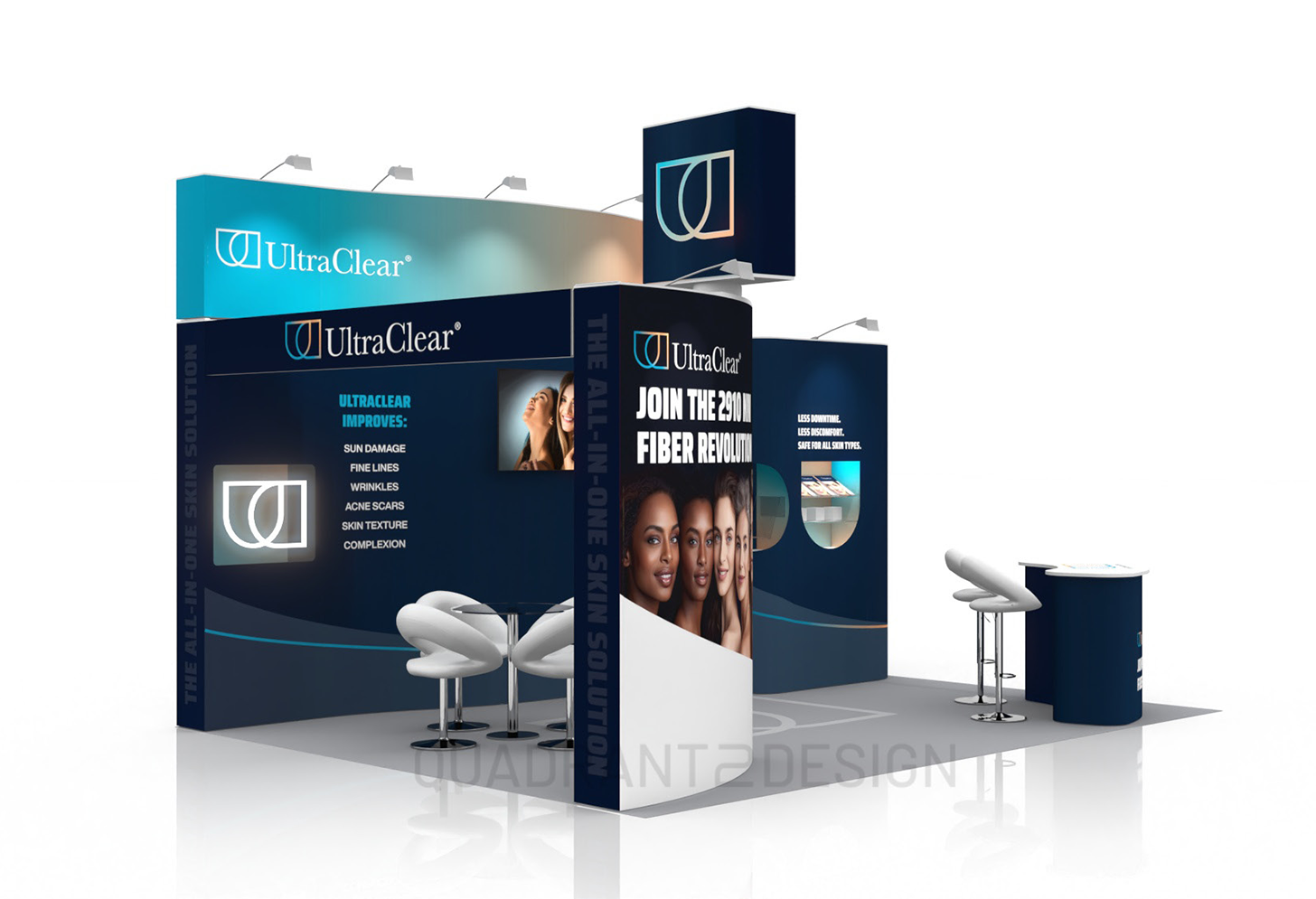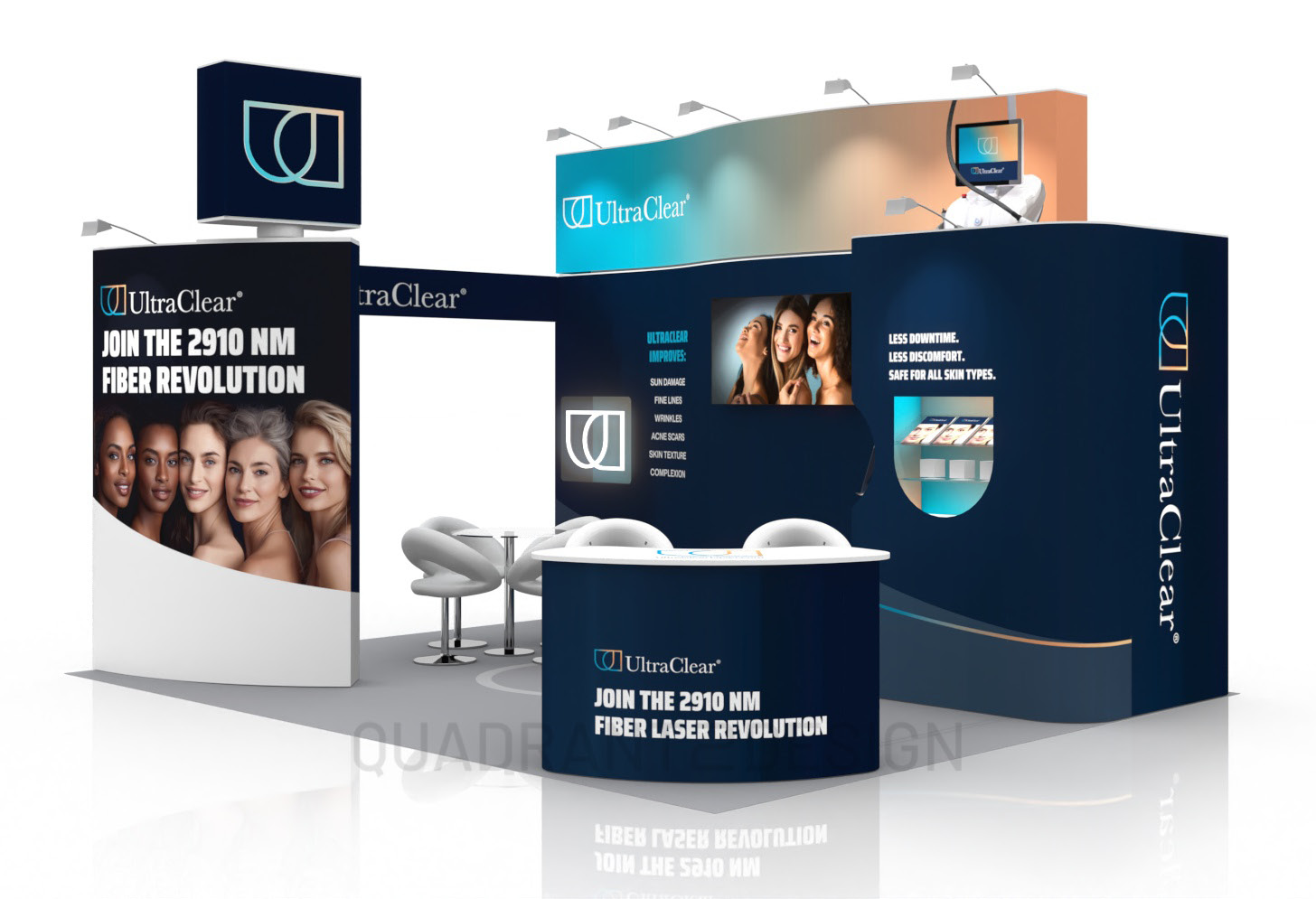 For the CCR London trade show, I designed a booth highlighting UltraClear®, one of Acclaro Medical’s flagship aesthetic devices. I created the full visual layout, including each panel design, ensuring the space reflected the brand’s premium identity while drawing attention to the device’s innovative technology. The final booth was rendered and brought to life by the booth production company using my designs.